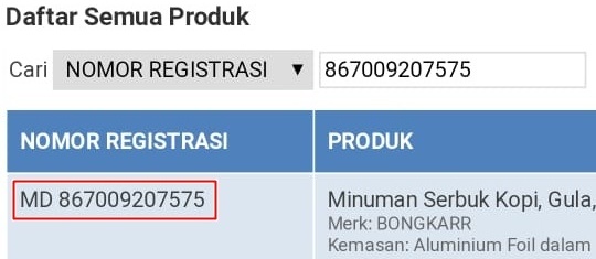 Ijin BPOM dan Legalitas Kopi bongkar BPOM : MD867009207575